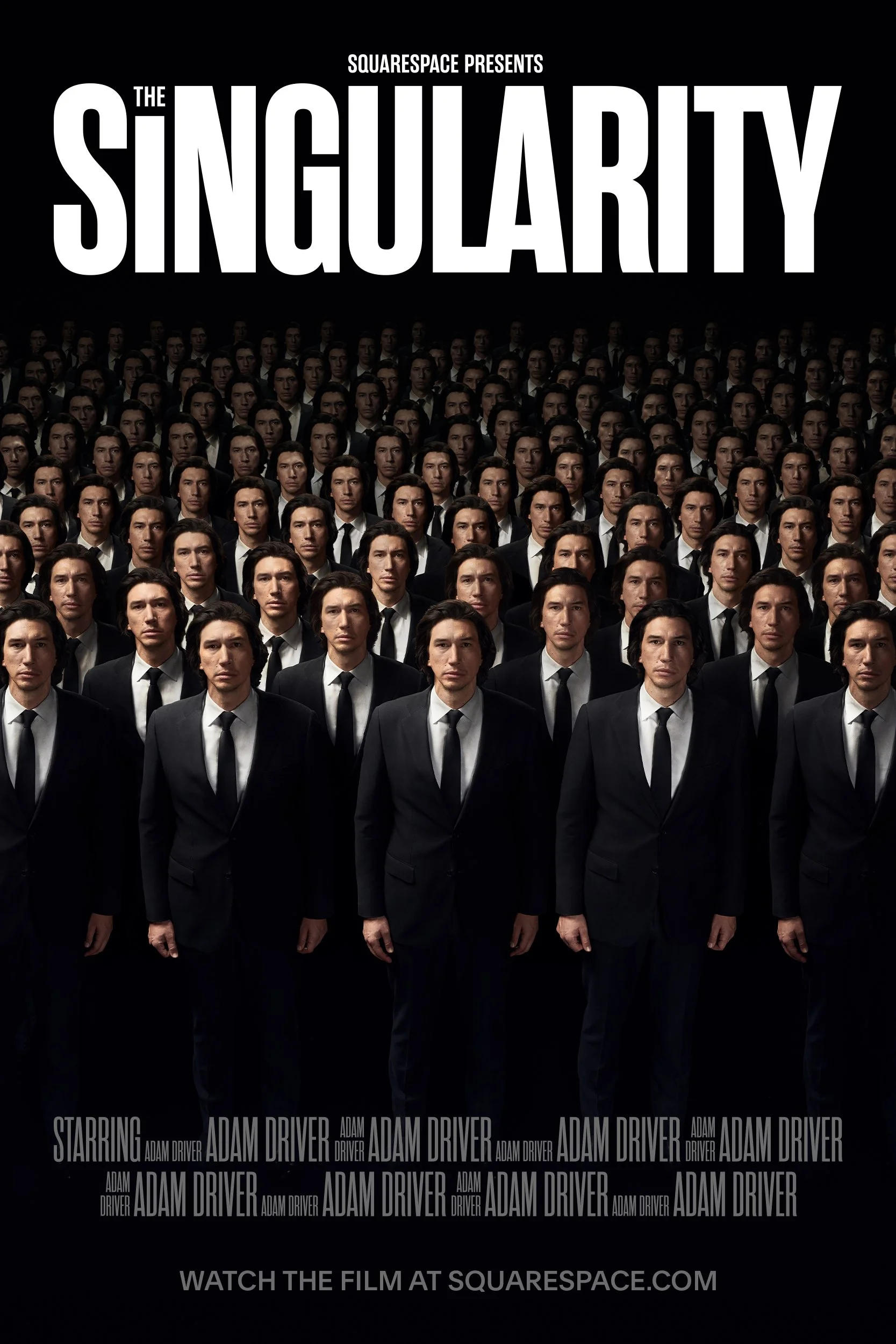 In our film, the realization that Squarespace is a website that makes websites sends actor Adam Driver on an epic journey to the fraying edges of reality, where he spawns multiple versions of himself and ultimately triggers “The Singularity” — the end of our physical reality and the beginning of something new. We continued to explore all of those themes in the surrounding films, posters, social posts and website.